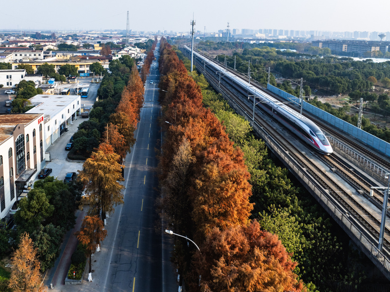 繁忙的公路与驰骋的高铁呈现出一幅和美的画卷。车辆在美景中穿行,一片片落叶随风起舞,缓缓飘落在路面上,行走其中每一步都踏出了诗意与浪漫,让人仿佛置身于一个梦幻般的世界中。趁周末天气晴好,快去解锁江北冬季童话吧!